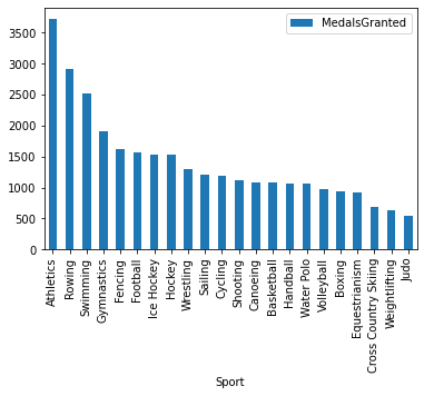 results_df.plot.bar(x='Sport', y='MedalsGranted')